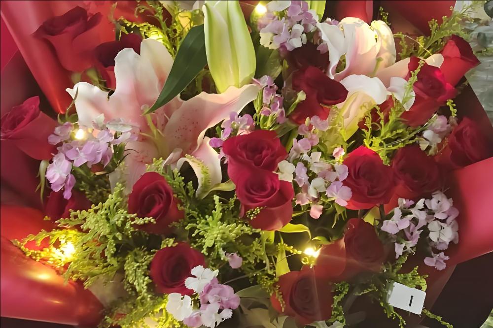 玫瑰花束:别家说“99朵代表天长地久”,我们直接给你看99朵的实物量——足足要占半个后备箱!上周有个小伙儿不信邪,非要和宣传图对比,结果发现实物花头比照片还大一圈,急得追问:“你们是不是发错成进口品种了?”(其实只是花艺师凌晨四点现拆的云南A级玫瑰)